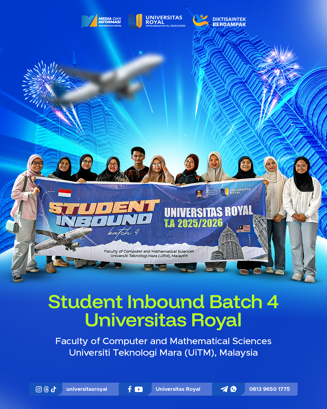 Universitas Royal kembali menunjukkan komitmennya dalam memperkuat internasionalisasi pendidikan melalui program Student Inbound Batch 4 Tahun Akademik 2025/2026. Program ini menghadirkan mahasiswa dari Faculty of Computer and Mathematical Sciences, Universiti Teknologi MARA, bagian dari Universiti Teknologi MARA (UiTM), Malaysia.